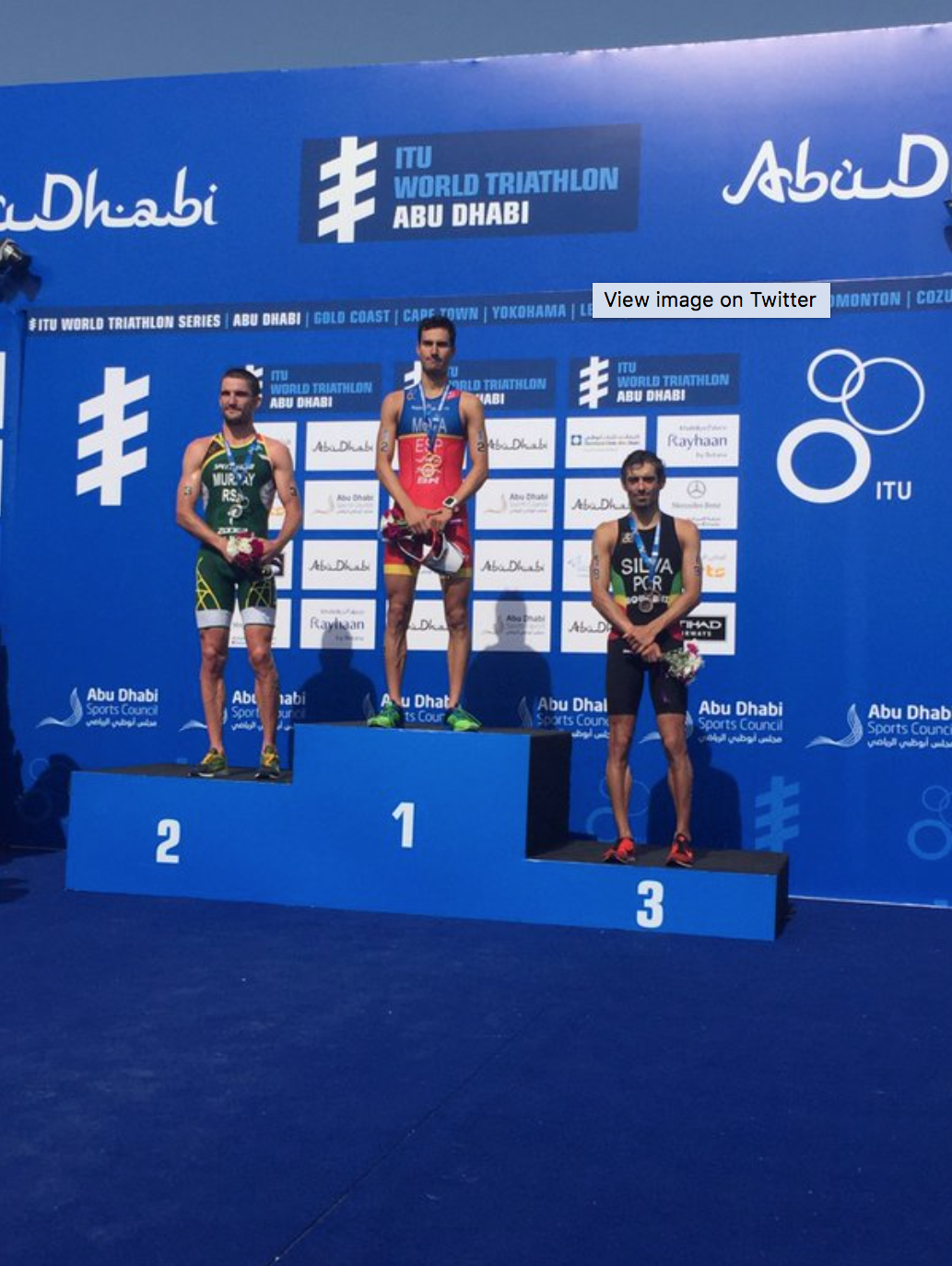 João Silva começou hoje a sua campanha na World Triathlon Series (WTS) da melhor maneira, com uma medalha de bronze em Abu Dhabi. O português terminou os 1500 metros de natação, 40 quilómetros de ciclismo e 10 quilómetros de corrida em 1:47:08 h, apenas superado pelo sul-africano Richard Murray (1:46:54) e pelo vencedor da etapa, o espanhol Mario Mola, que parou o cronómetro em 1:46:39 h.